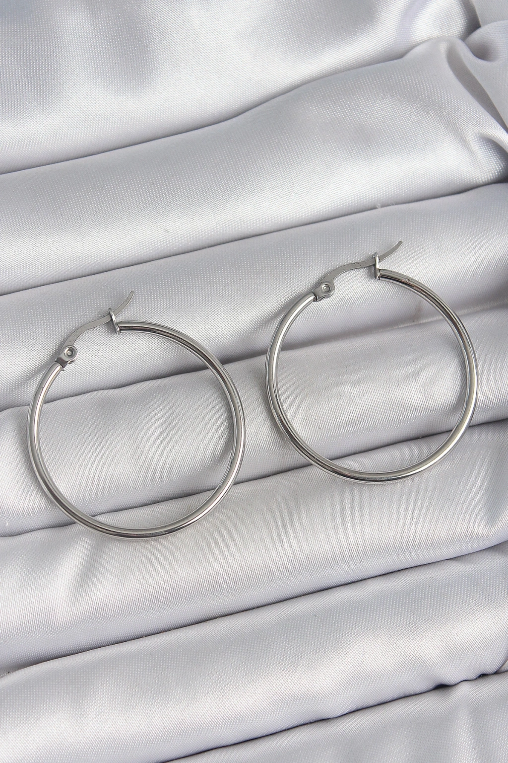316 Çelik Gümüş Renk 33 mm Halka Model Kadın Küpe