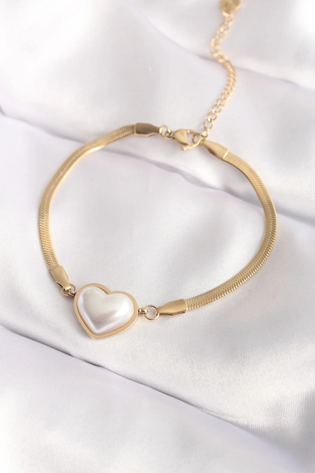 316L Çelik Gold Renk Bombeli Kalp Kadın Bileklik
