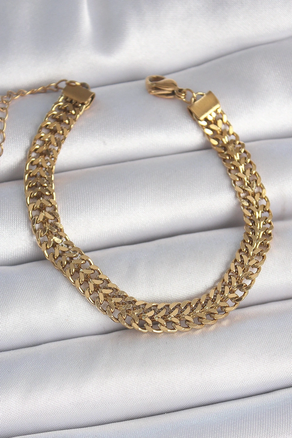 316L Çelik Gold Renk Hasır Zincir Model Kadın Bileklik