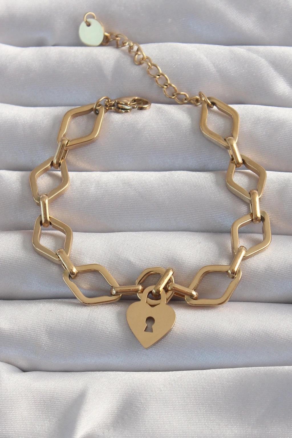 316L Çelik Gold Renk Kalp Model Zincir Bileklik