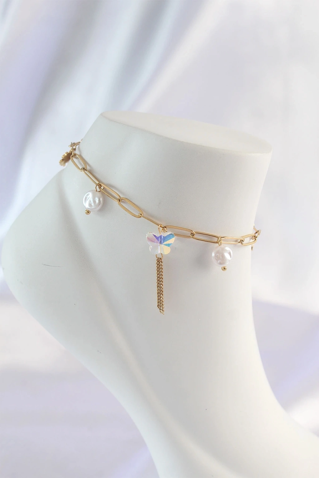 316L Çelik Gold Renk Sallantılı Kelebek Halhal