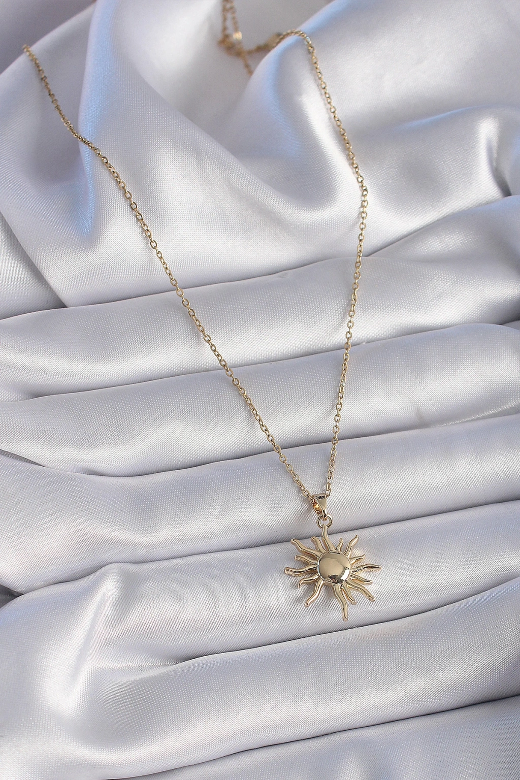 316L Çelik Gold Renk Zincir Güneş Figür Kadın Kolye