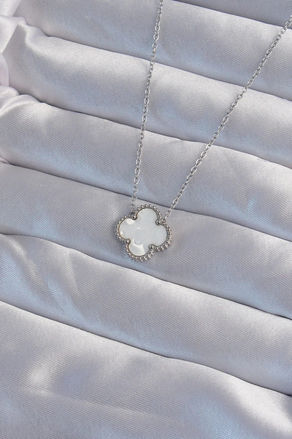 316L Çelik Gümüş Renk Beyaz Sedefli Yonca Kolye