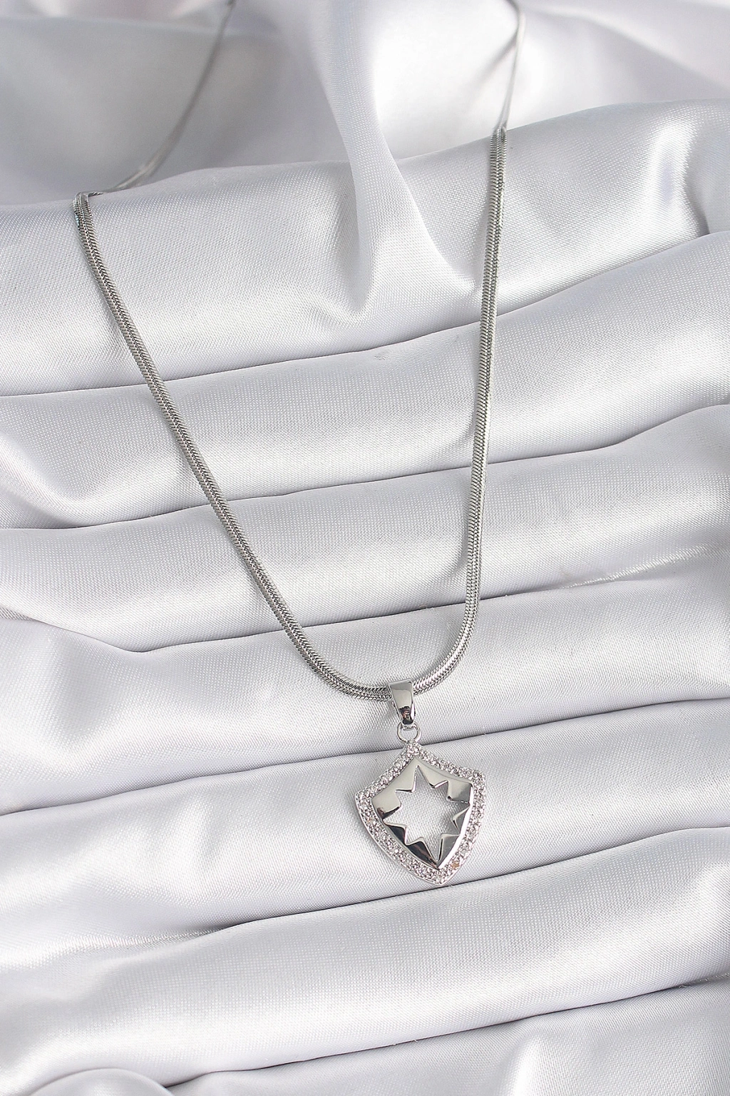 316L Çelik Gümüş Renk İtalyan Zincir Zirkon Taşlı Kutup Yıldızı İşleme Model Kadın Kolye