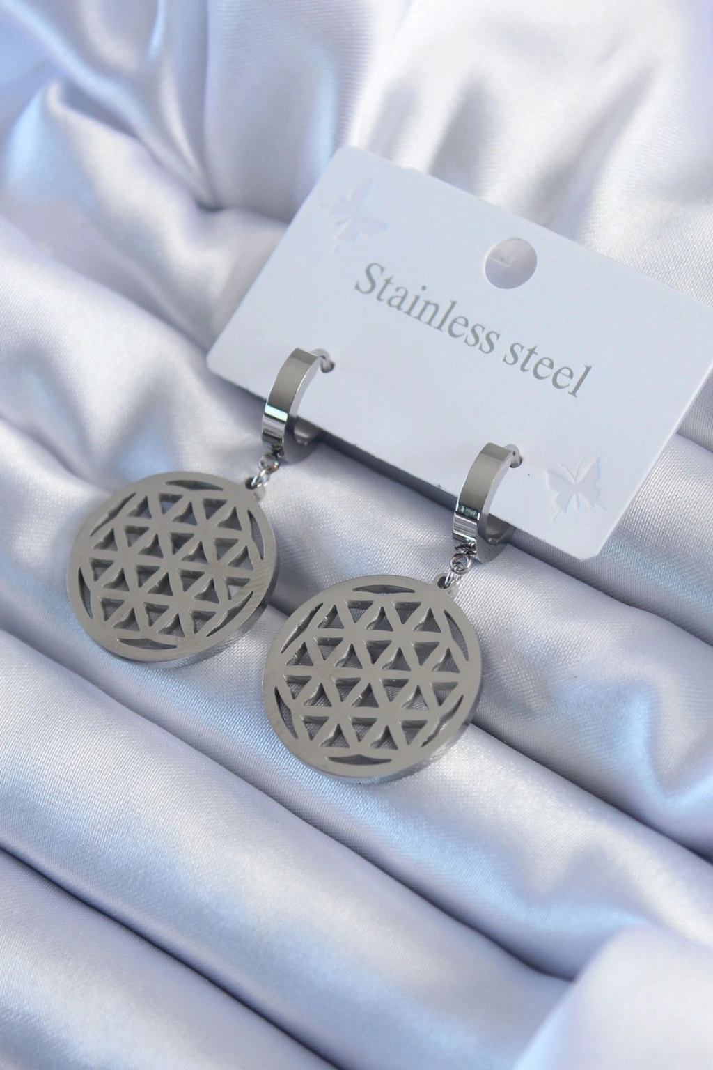 316L Çelik Gümüş Renk Lotus Model Kadın Küpe