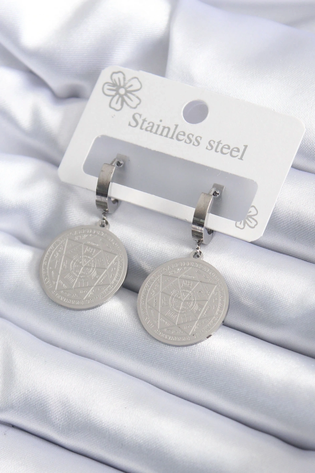 316L Çelik Gümüş Renk Pentagram İşleme Model Kadın Küpe