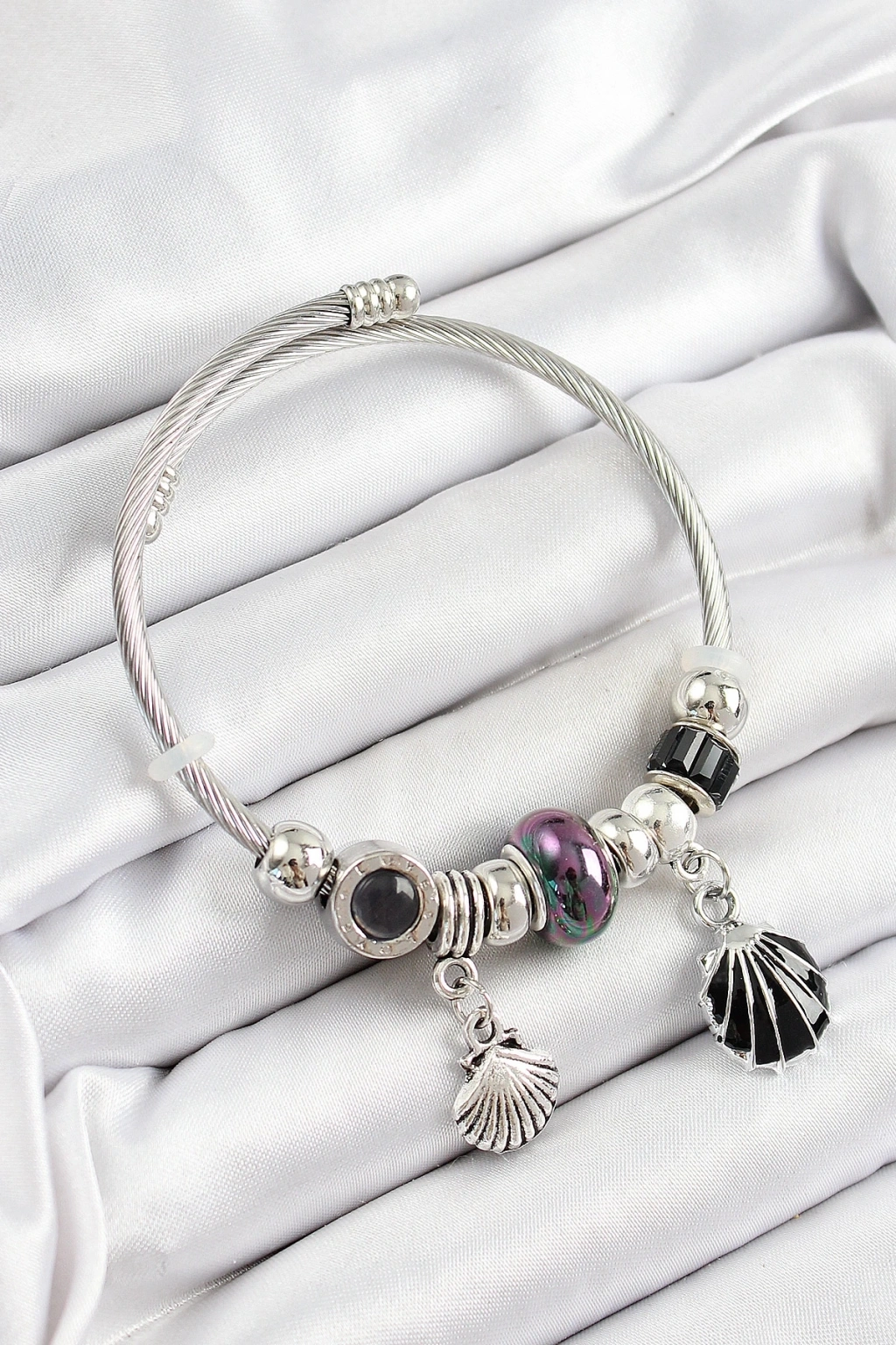 316L Çelik Siyah İstiridye Model Gümüş Renk Charm Bileklik