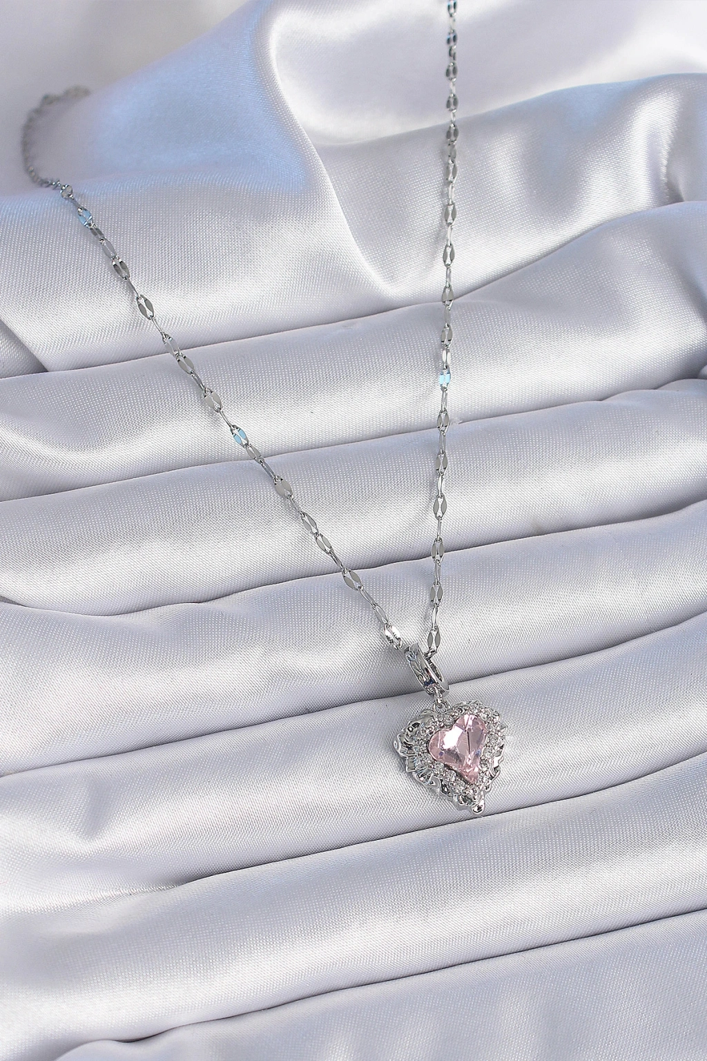 316L Çelik Zincir Gümüş Renk Zirkon Taşlı Kalp Model Kadın Kolye