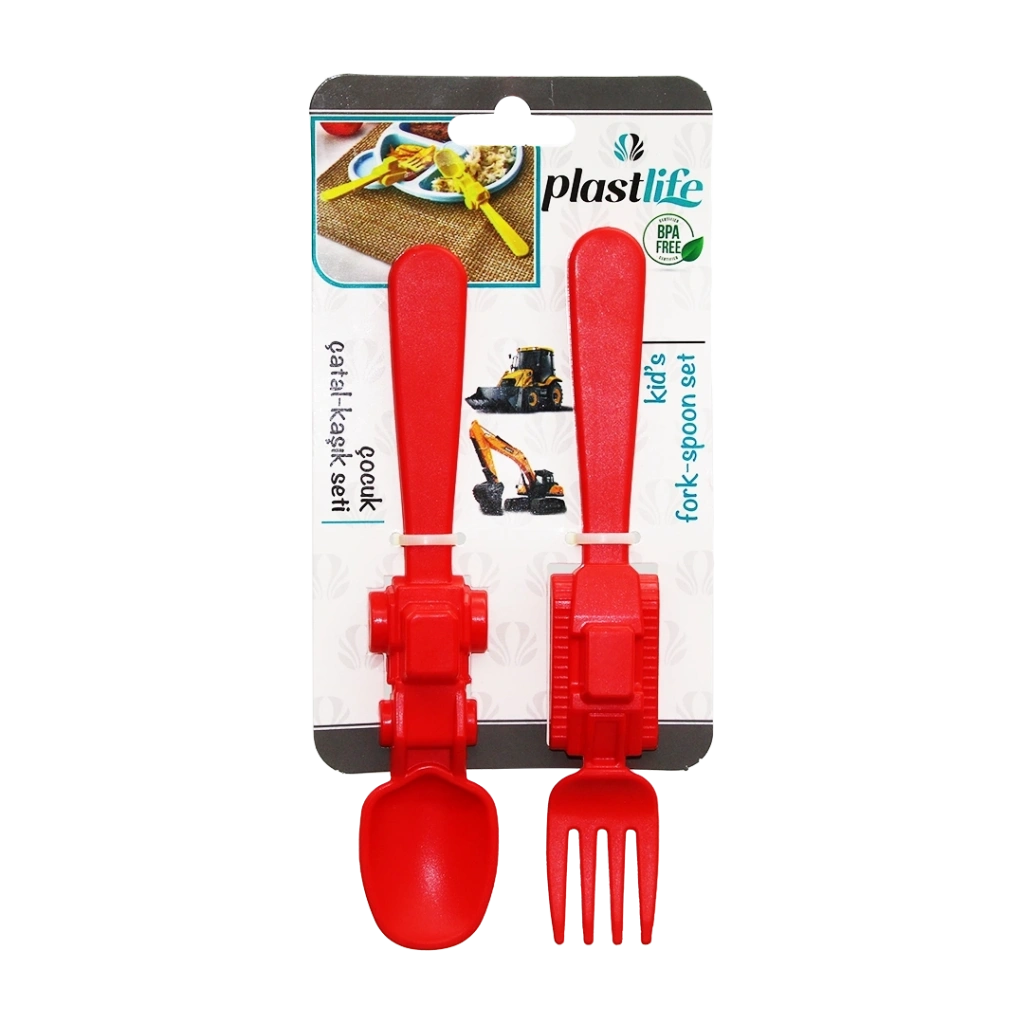 ARAÇ FİGÜRLÜ PLASTİK ÇOCUK ÇATAL - KAŞIK SETİ