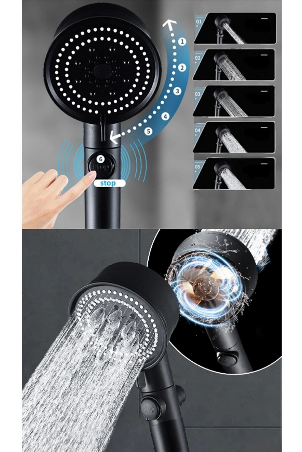 Duş Başlığı Pervaneli Serinletici Tasarım 5 Modlu (5047)