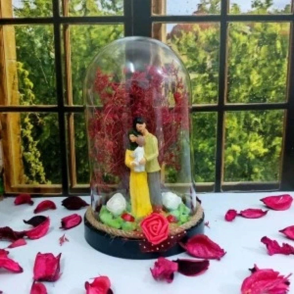 Fanus Teraryum Tesettürlü Sarılan Aile Temalı Hediyelik Kuru Çiçeklia