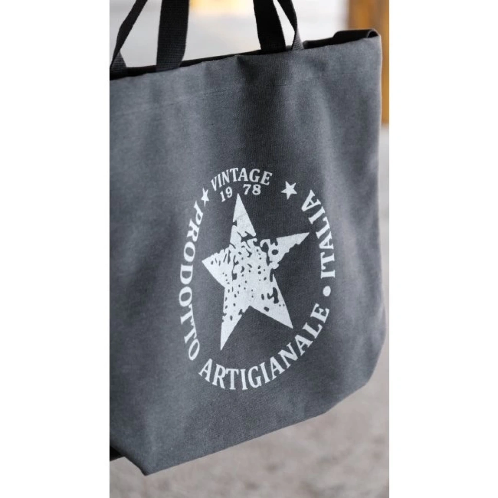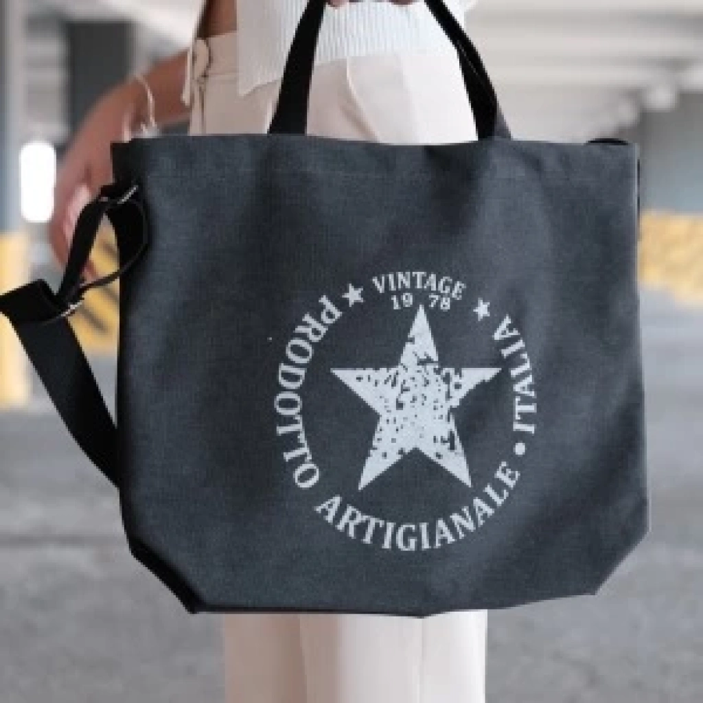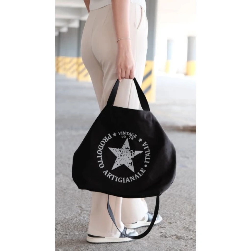 Kanvas Çapraz Askılı Tote Çanta Siyah Yıldız Desen