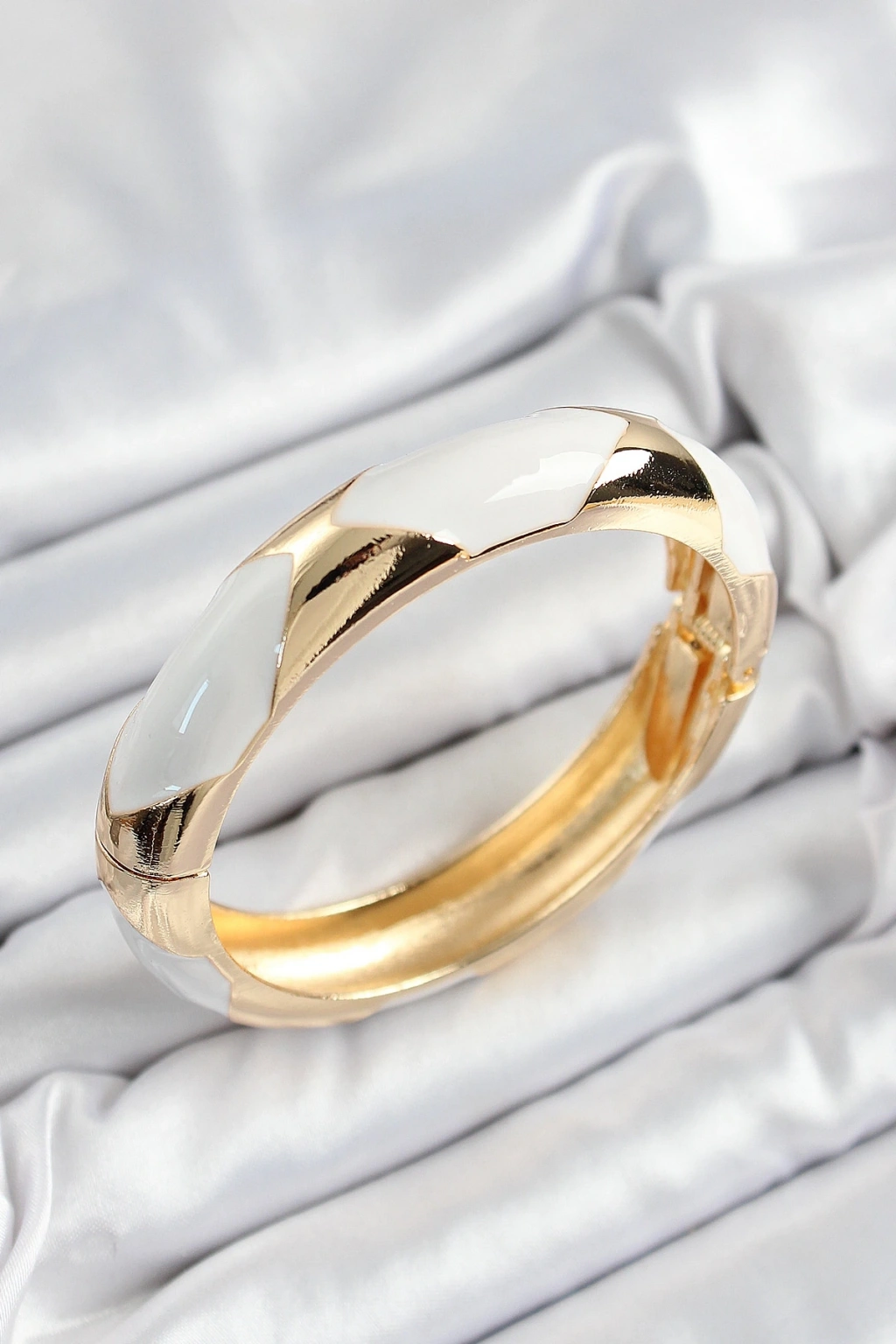 Pirinç Beyaz Mineli Baklava Model Gold Renk Kadın Kelepçe