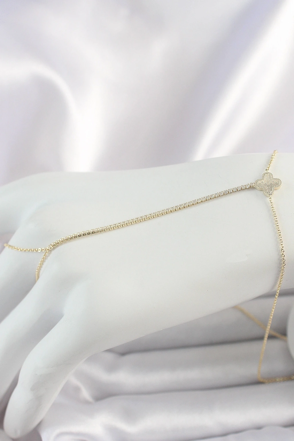 Pirinç Gold Renk Su Yolu Zirkon Taşlı Yonca Model Kadın Şahmeran