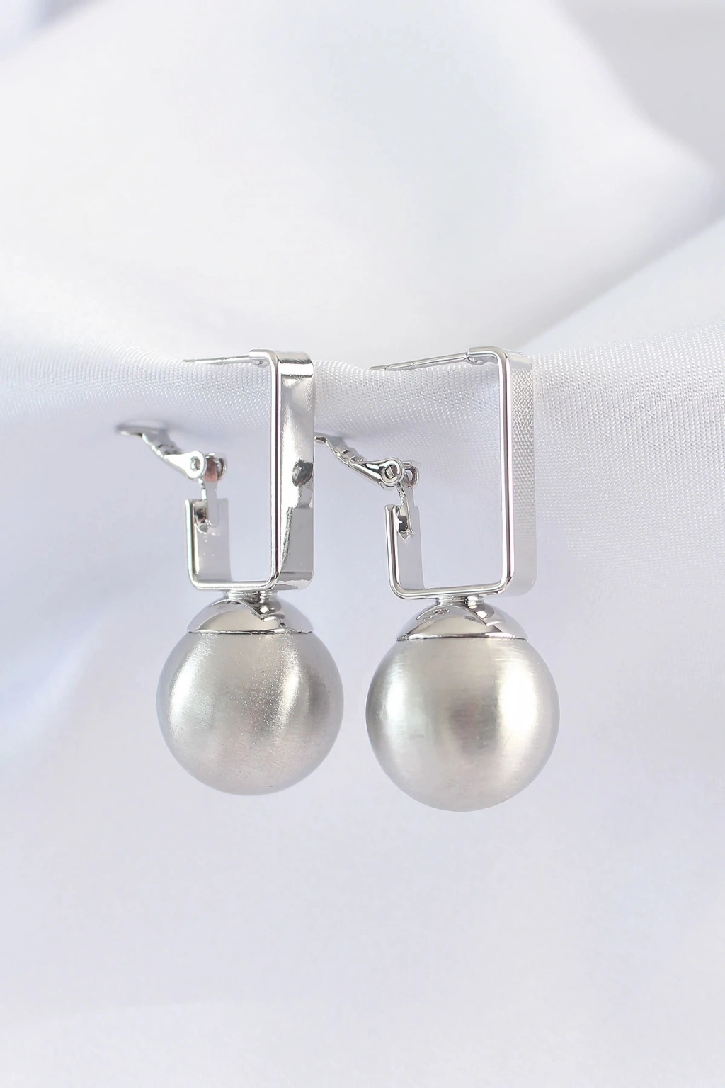 Pirinç Gümüş Renk Dikdörtgen Detay Oval Küpe