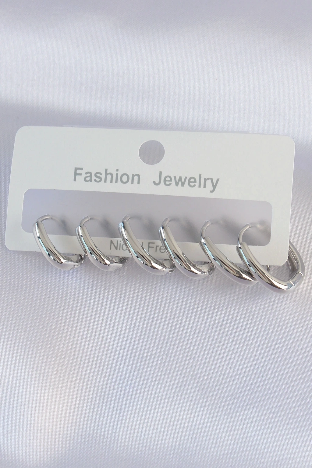 Pirinç Gümüş Renk Oval Küpe Seti