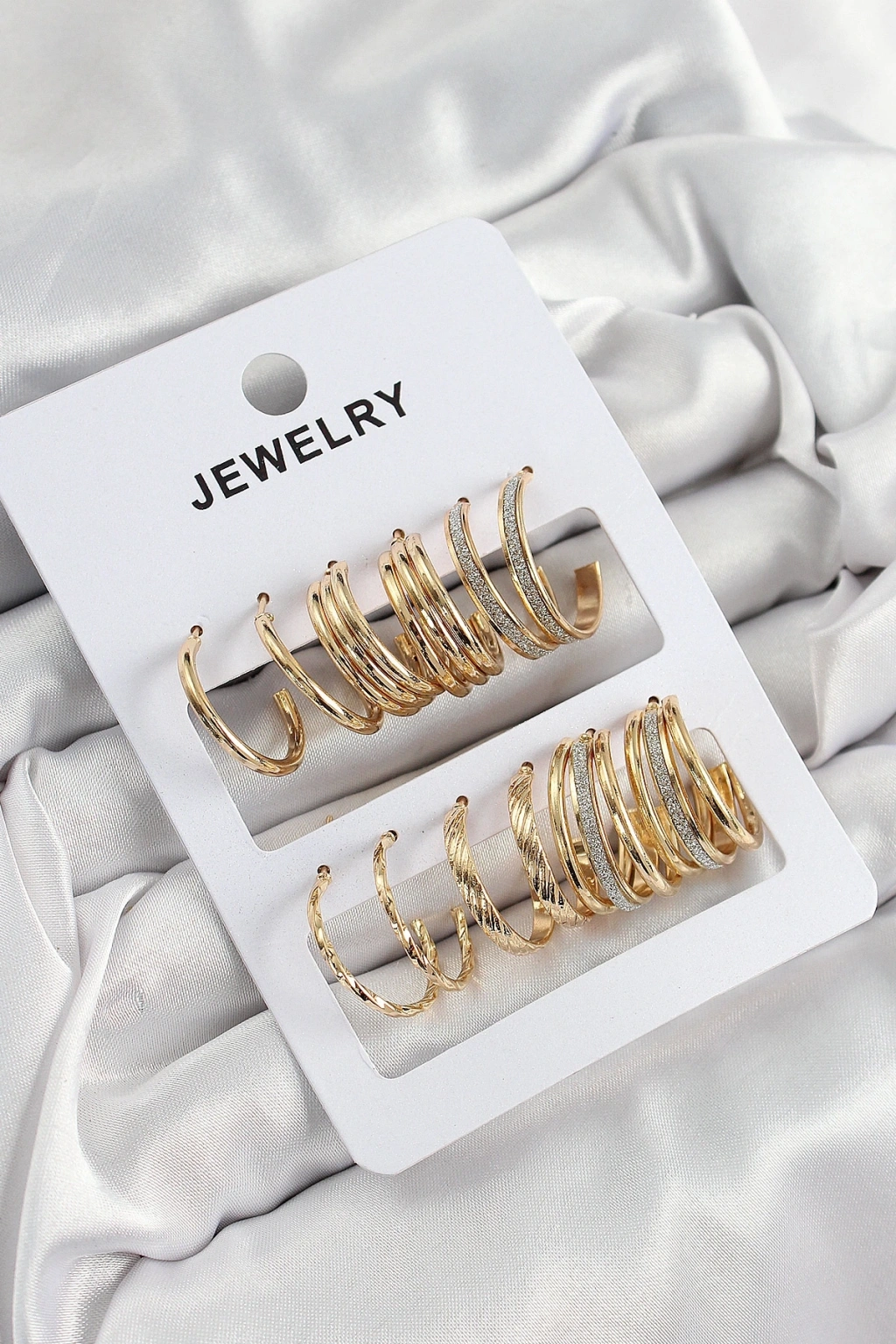 Pirinç Karışık Halka Model Gold Renk 6 Çift Kadın Küpe Set