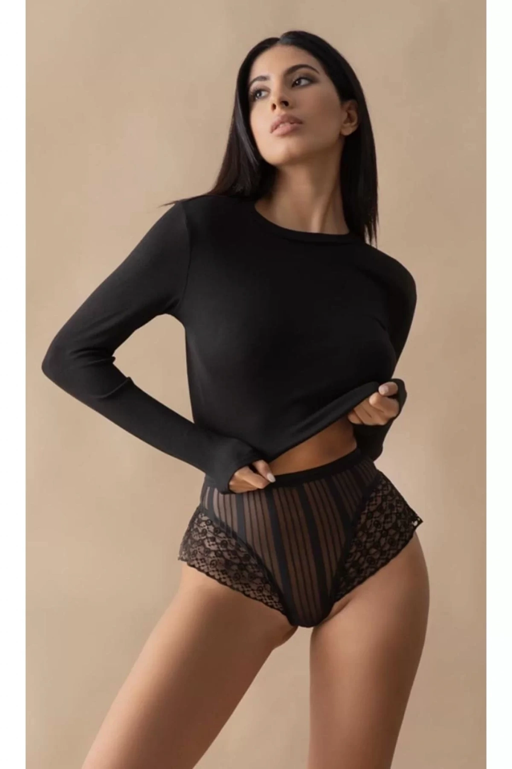 Siyah Kadın Çizgili Külot Veronica-k1008