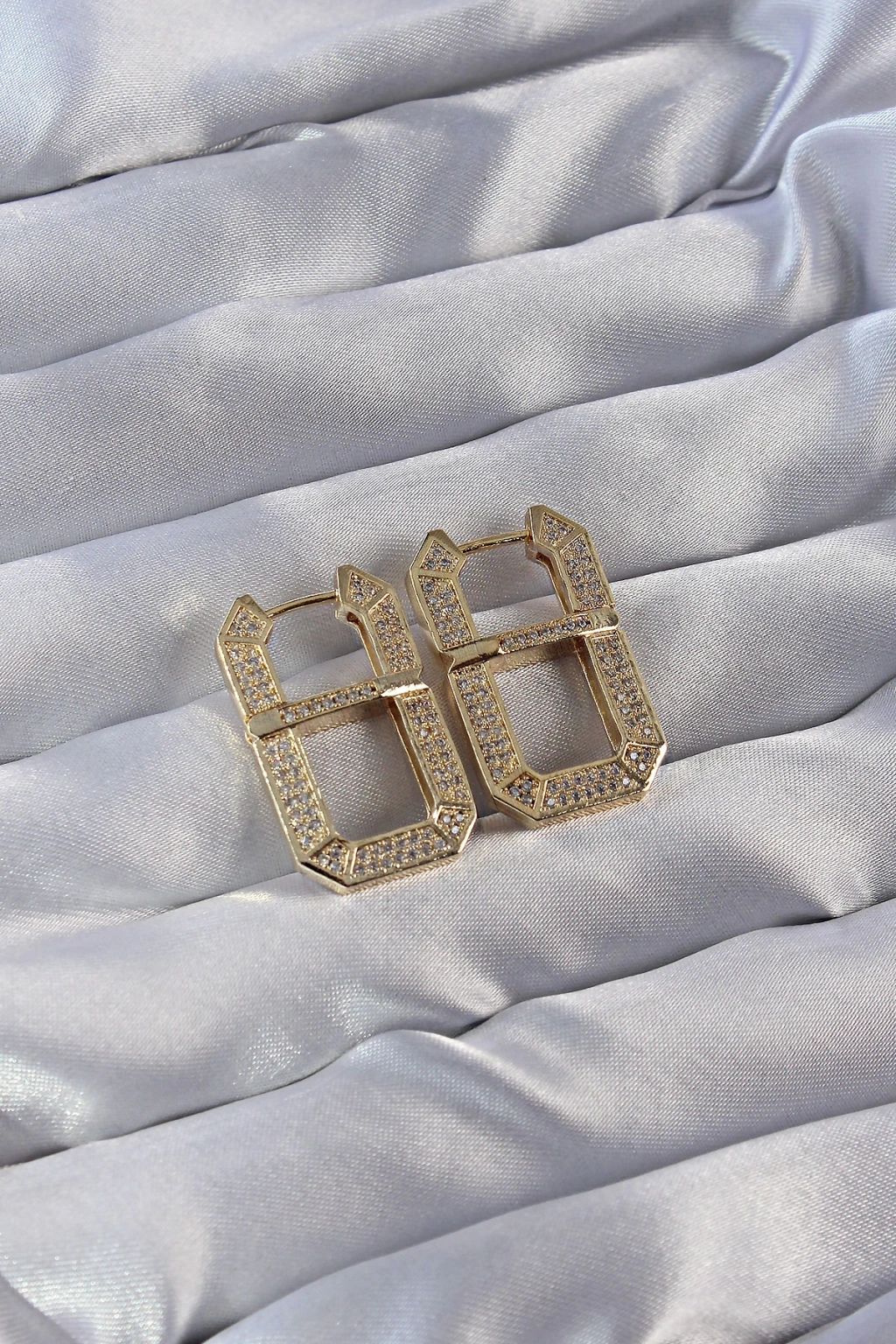 Vip Seri Pirinç Gold Renk Zirkon Taşlı Serenay Küpesi
