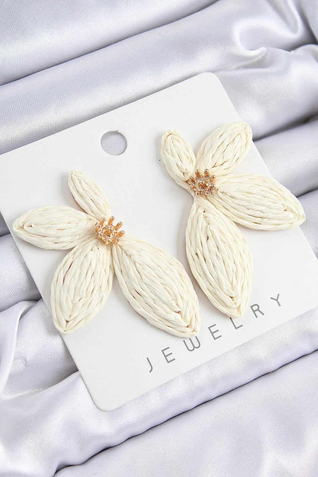 Yarım Çiçek Model Krem Renk Kadın Hasır Küpe
